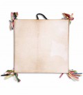 El adufe es un instrumento tradicional portugués, clasificado como pandereta de membrana cuadrangular. En el interior, se colocan semillas o suelos pequeños para enriquecer el sonido. Esta madera MMG tiene el tamaño más común en el que los lados del marco miden aproximadamente 45 centímetros.