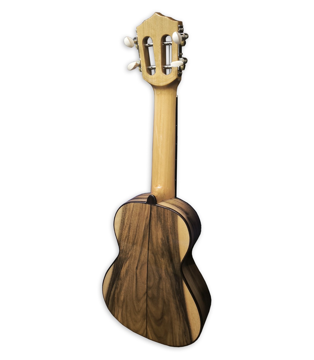 La tradicional boca en forma de raya refuerza la identidad tradicional del instrumento, preservando un legado musical que se extiende a lo largo de generaciones. El fondo y los aros, que pueden ser de nogal, cerezo, sicomoro o caoba australiana, aportan riqueza tonal y durabilidad, a la vez que le otorgan un acabado natural de gran elegancia.