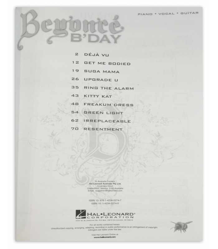 Este libro contiene las canciones del segundo CD a solo de la diva del R&B Beyoncé Knowles. Con diez temas arreglados con la partitura de voz y acompañamientos para piano y guitarra.