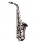 Eye catching alto saxophone with a black body and silver keys. Comes with an adjustable thumb rest and blue steel springs that are rust resistant. Includes a hard case and accessories.