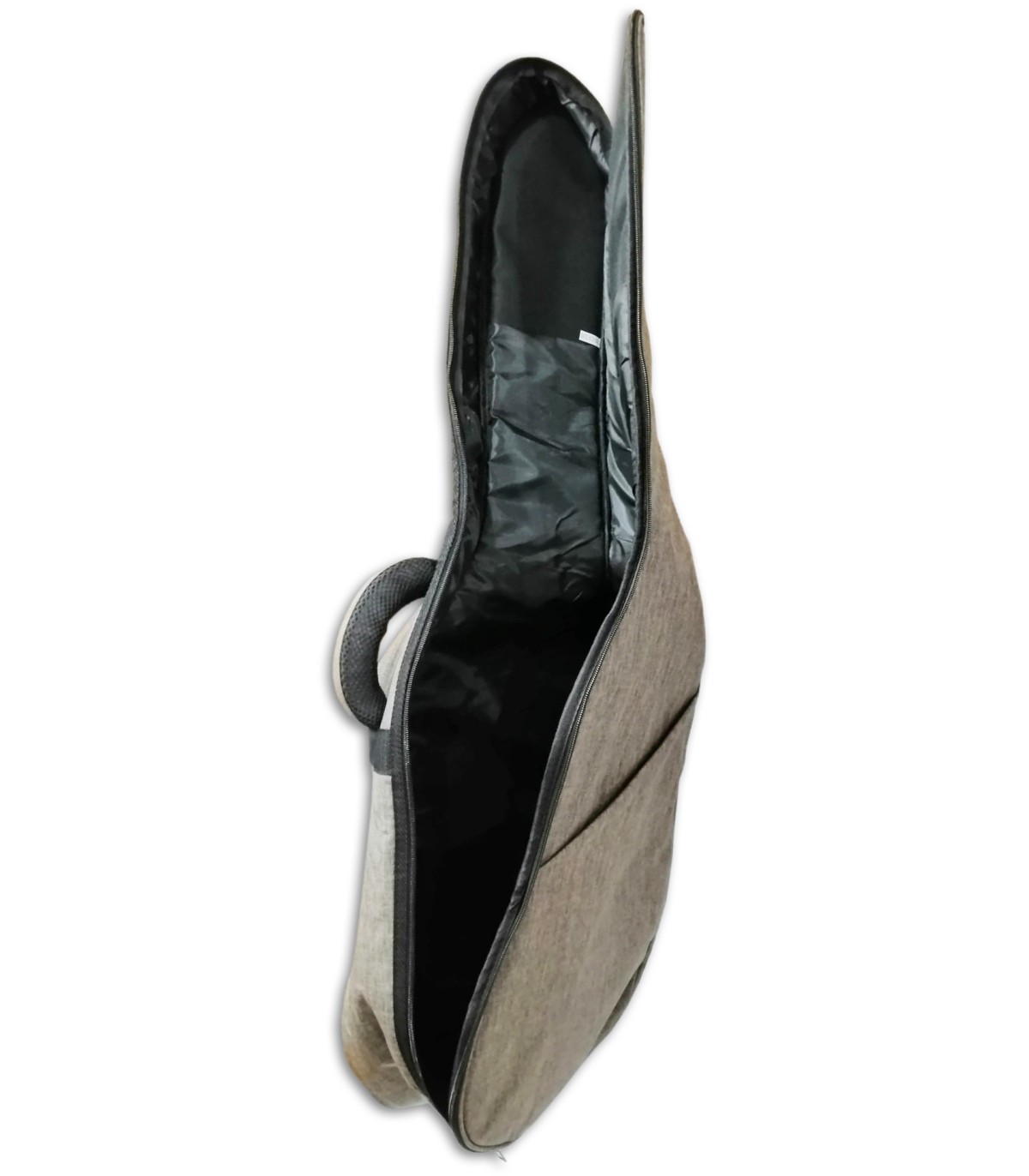 Alhambra gig bag for classical guitar in 420D polyester, brown, with 10 mm thick padding, front pocket, lined handle and adjustable straps.