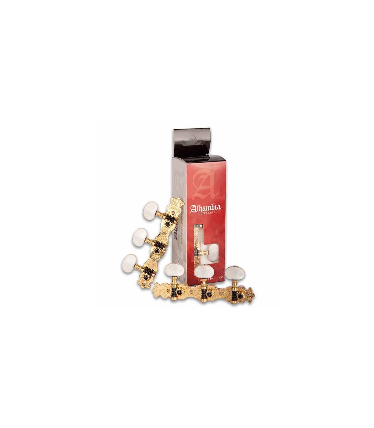 Set of tuning machines for classical guitar nylon strings, with Alhambra unique design. They fit many classical guitars outside the Alhambra brand.