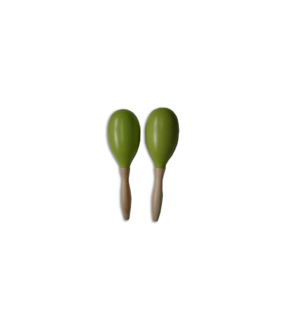 Honsuy pair of maracas model 47400. Green colour plastic heads and wood handles. Musical initiation instruments with a good relation between the price and the quality.