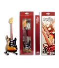 These Collection miniatures represent various models of electric and acoustic guitars, placed on a stand.