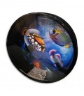 The Ocean Drum is a percussion instrument that produces sounds similar to those of the waves crashing on the beach. This product presents a fine plastic membrane and the sides and interior decorated with fish illustrations. Made by Honsuy.