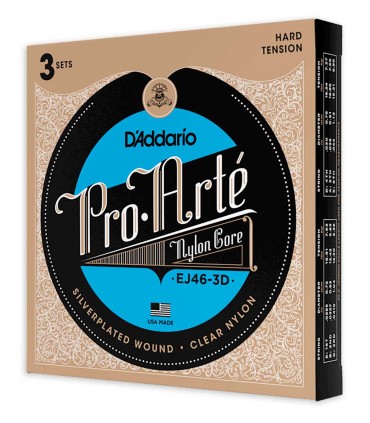 Rooted in generations of D’Addario string-making experience, Pro-Arté Nylon is the standard classic string set. The sticks have a multifilament nylon core and are wound in silver-plated copper to provide an exceptionally warm and consistent response. Coupled with clear nylon treble strings that deliver sweet, smooth highs, the Pro-Arté EJ46 delivers the sound and feel that define classical guitar. High tension strings deliver a rich, bold sound and strong projection. This EJ46-3D is a pack of 3 EJ46 sets.