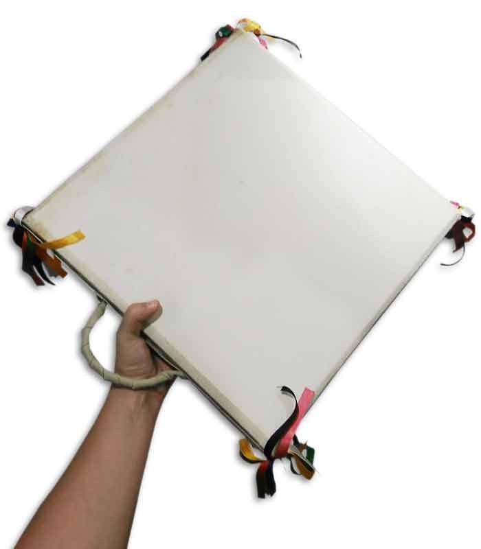 O adufe é um instrumento musical português membranofone quadrangular. A medida 35cm corresponde aos lados do caixilho.