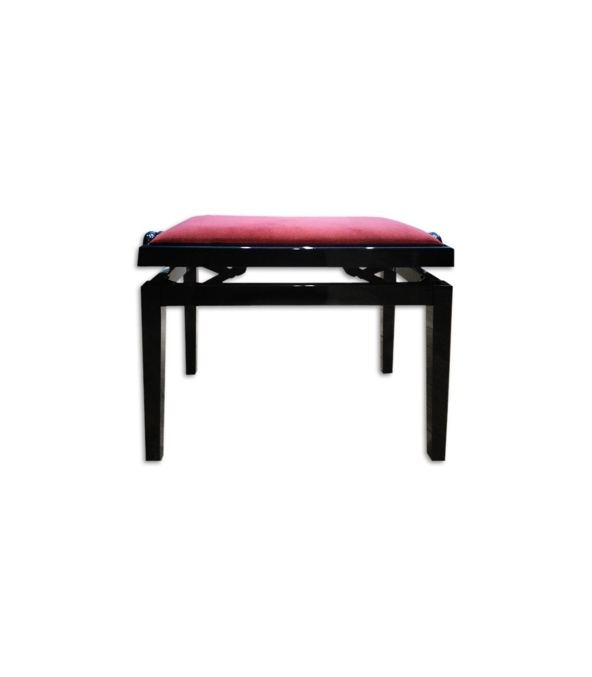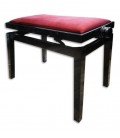 Banco para piano regulável com acabamento em preto e assento bordeaux.