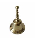 Campainha tipo sino com pega. Em metal e com 13cm de comprimento (incluindo a pega). Instrumento fabricado pela Honsuy.