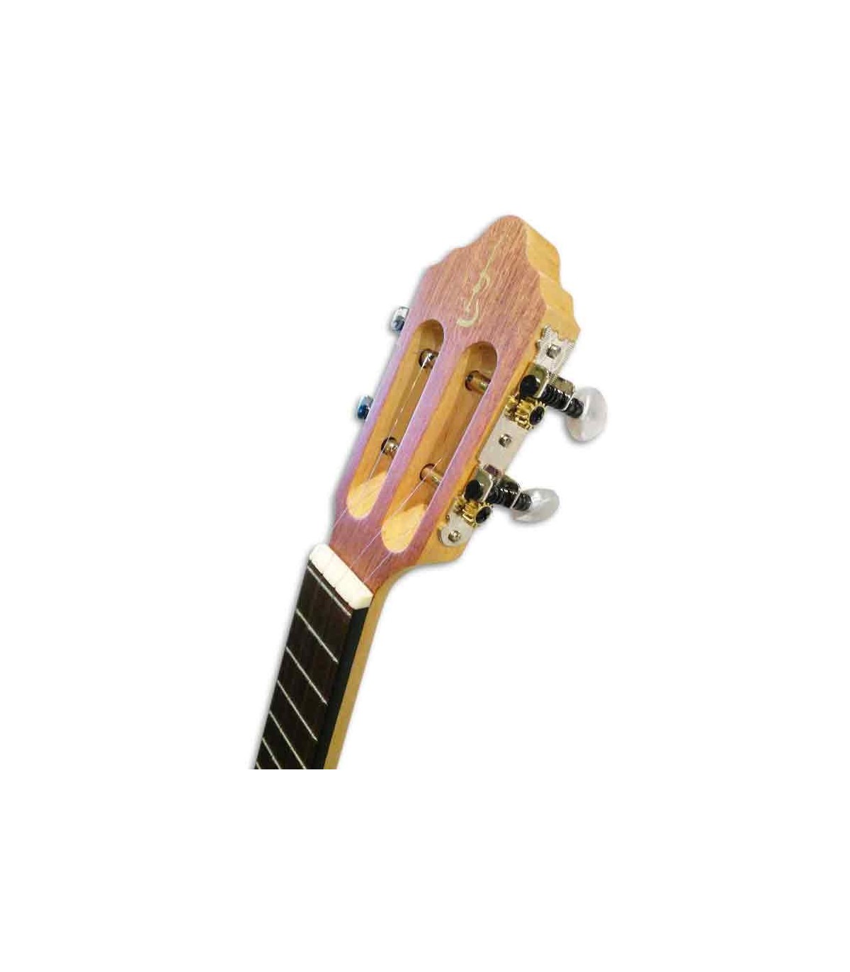 O fundo e as ilhargas são em nogueira laminada, em contraste com as madeiras maciças do tampo, e o braço é em ácer. A escala de 12 trastes em madeira negra africana está nivelada rasa ao tampo do cavaquinho, para um rasgueado brilhante e confortável, mesmo para quem ainda se está a iniciar neste instrumento.