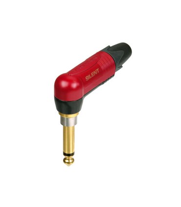 Ficha Neutrik NP2RX-AU-SIL profissional de 2 pólos e ângulo reto de 1/4", com contatos banhados a ouro, revestimento vermelho e interruptor silencioso.