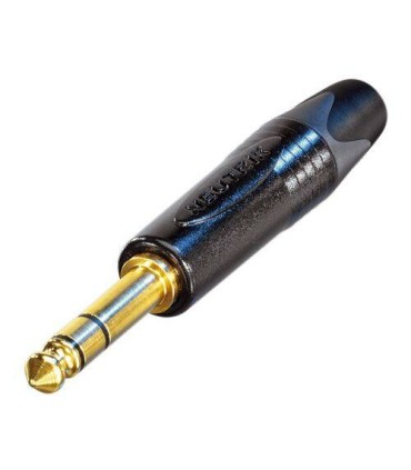 Ficha Neutrik NP3X-B de 3 pólos (stéreo) dourada. Mais resistente ao passar do tempo.