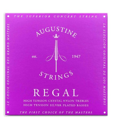 O jogo de cordas para guitarra clássica Augustine Regal Blue é um jogo de tensão alta. As cordas denominadas Regal constituem uma linha recente, correspondente a um novo processo de fabrico. Neste jogo Regal Blue, os baixos são em nylon multifilamento com revestimento em cobre e prata, mas os agudos são nylon transparente premium crystal, mais brilhantes e consistentes que as cordas tradicionais.
