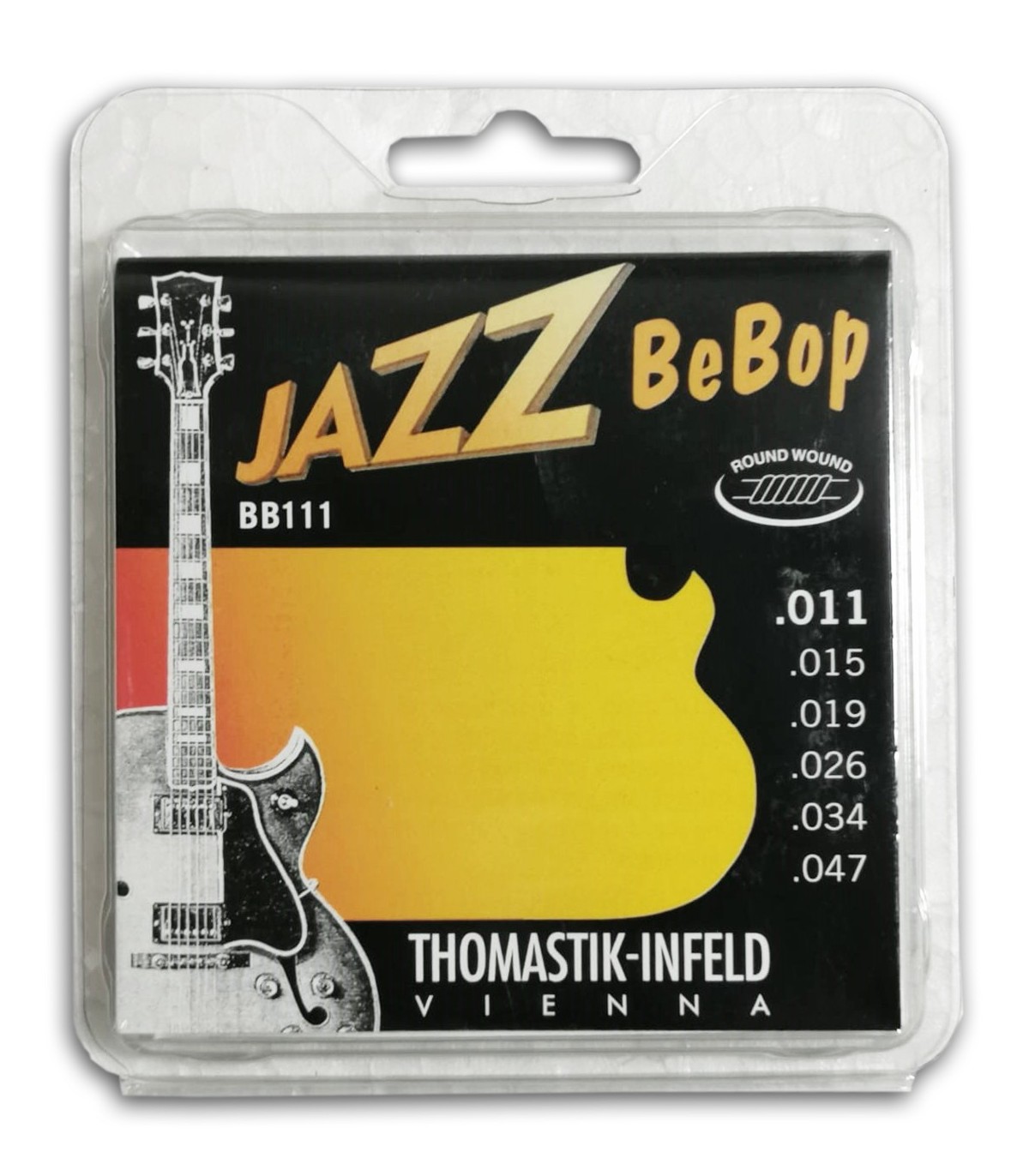 Cordas de guitarra com enrolado redondo. A construção e os materiais são muito semelhantes às cordas da serie Jazz Swing. Conjunto original de Thomastik-Infeld.