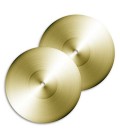 Par de pratos de 10cm de diâmetro em metal amarelo fornecidos pela Honsuy. Modelo 67050.